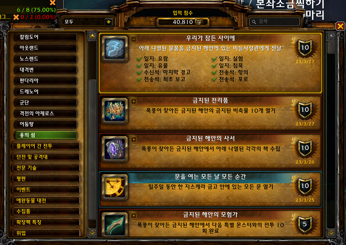 | [와우업적]금지된 해안의 모험가 / 금지된 해안의 용사 (7) | 2023.03.24 |