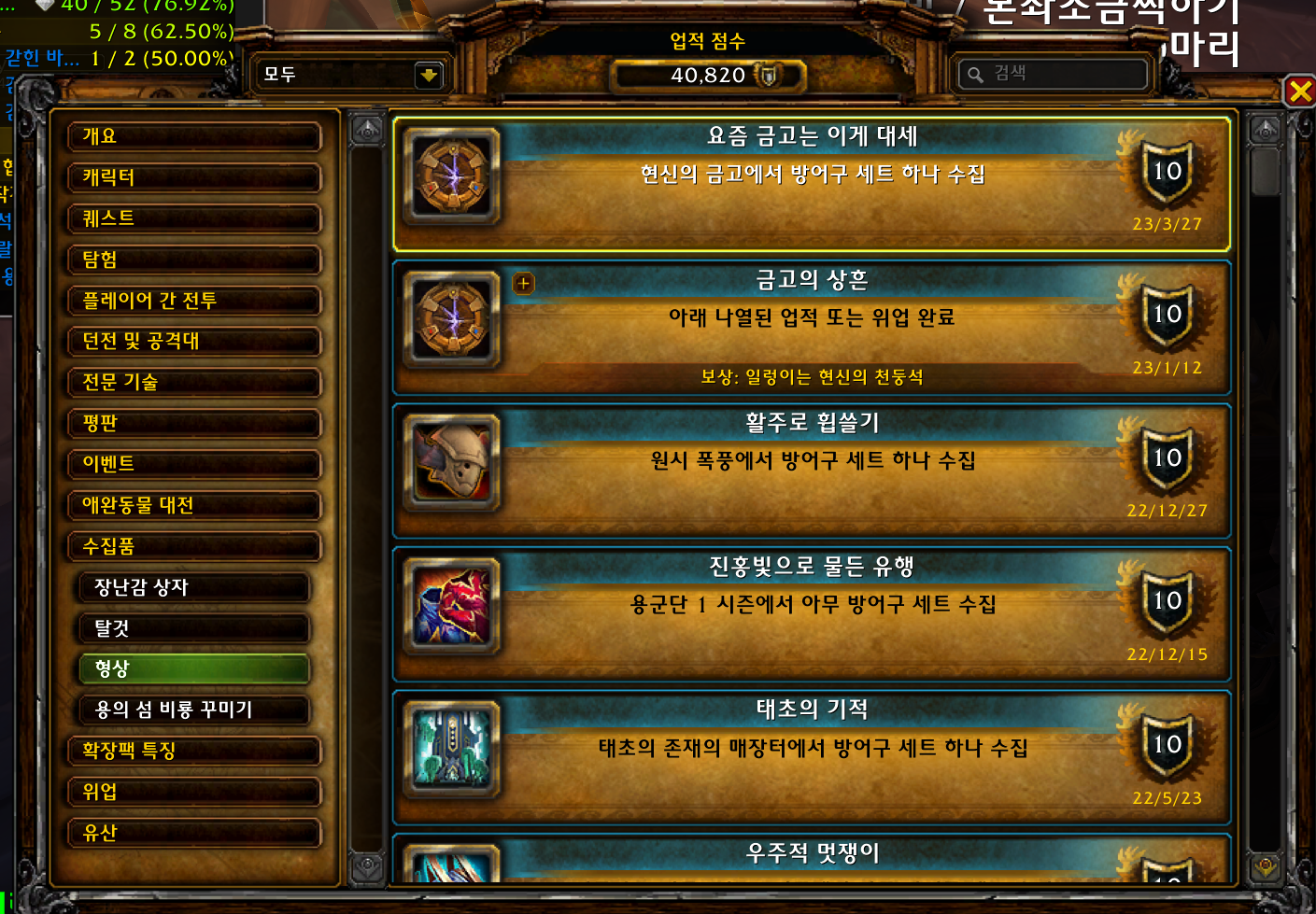 요즘 금고는 이게 대세 업적은 항상있어왔던 해당시즌 룩템 모으는 업적입니다.