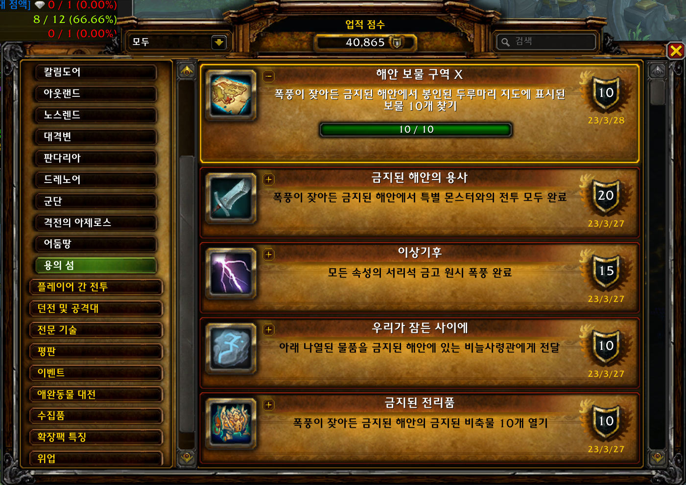 2023.03.28 해안 보물 구역 X 획득 10점짜리 40865점