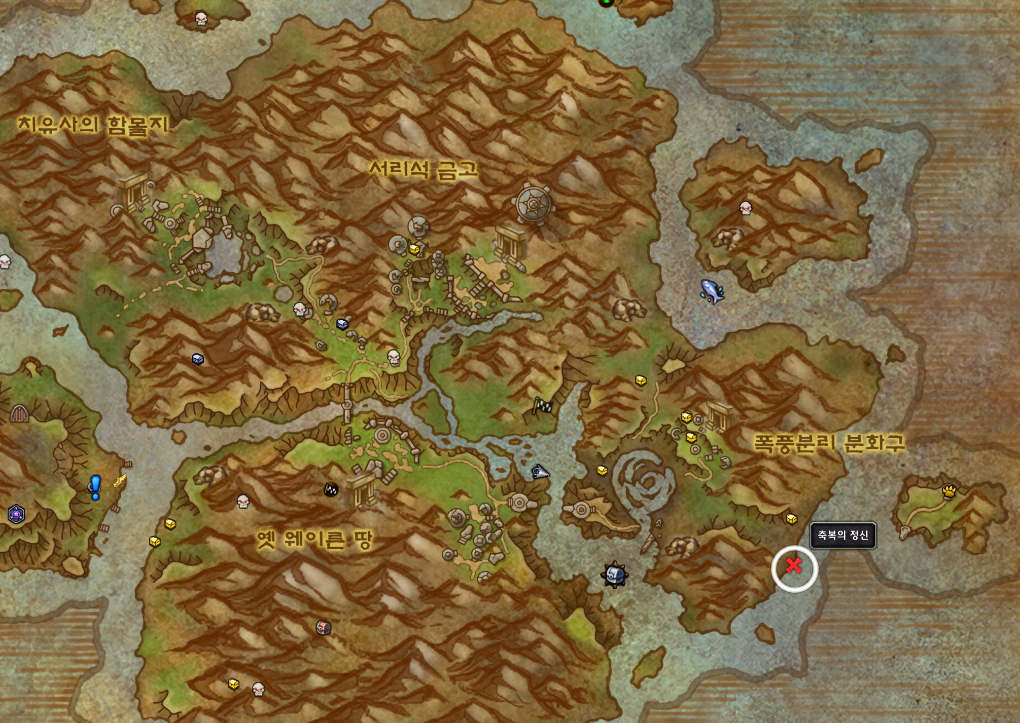 지도에 이런식으로 X표시로 보물위치를 알려줍니다. 보물을 먹으면 됩니다.