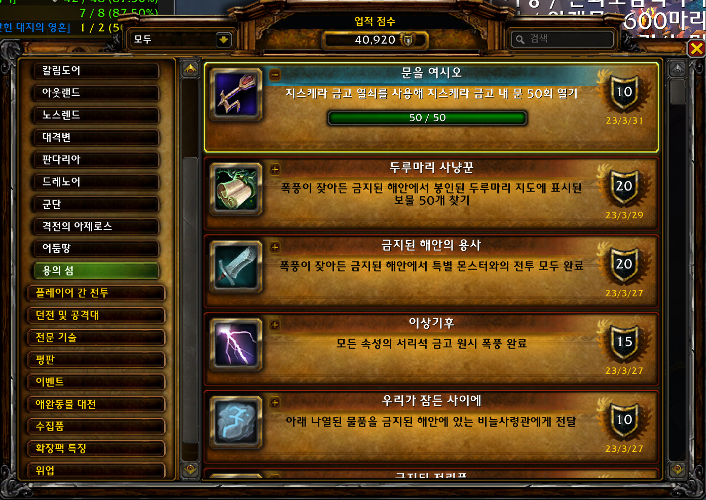 문을 여시오 업적은 용군단 업적으로 지스케라 금고 50회를 여는 업적입니다.