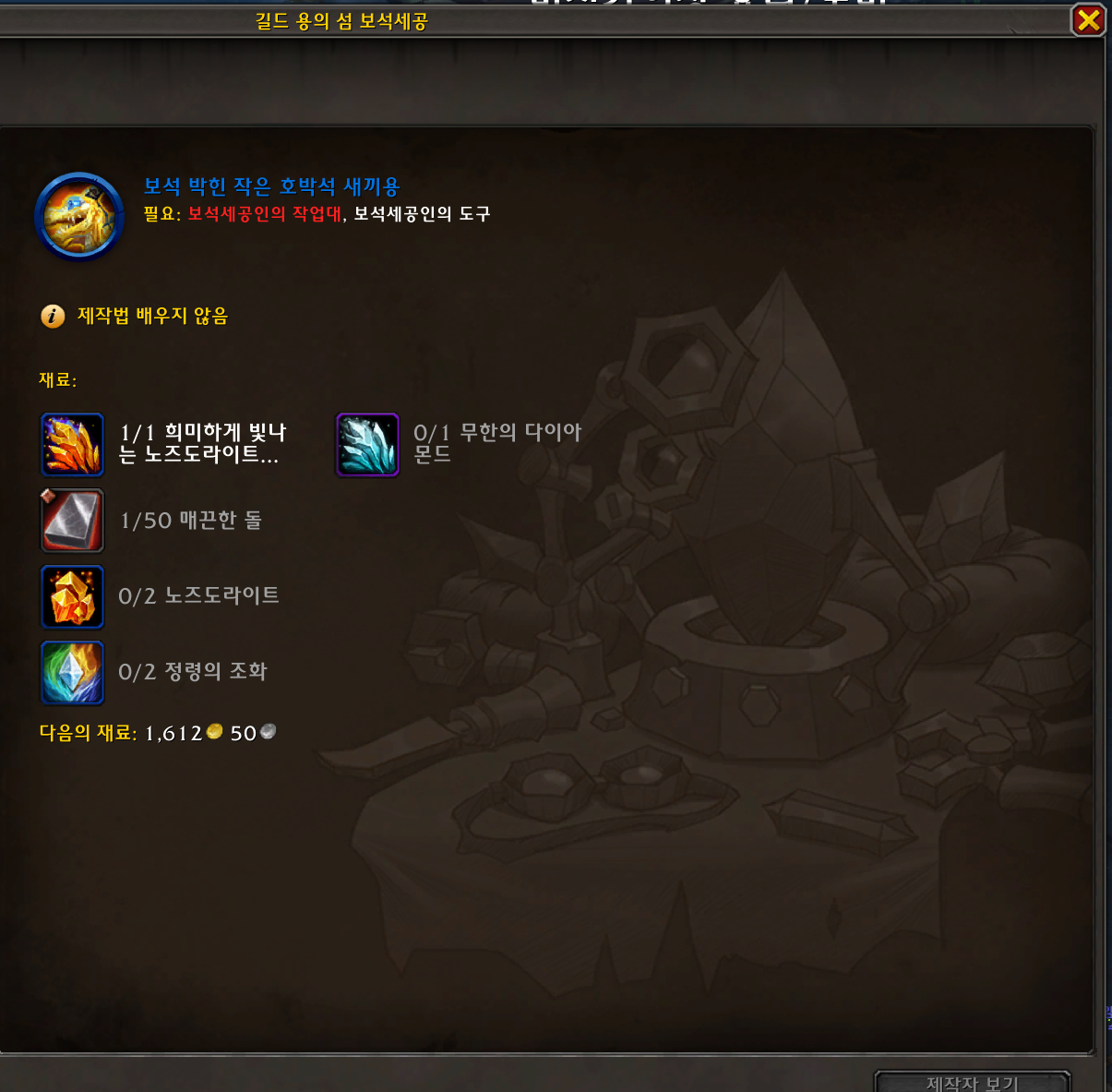 희미하게 빛나는 노즈도라이트 군집이 문제인데 이것은 흙이나 원정대짐을 캐서 탈드라서스 보물지도를 먹어야지만 획득이 가능합니다.