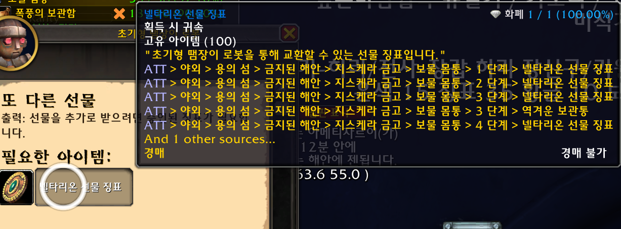 넬타리온 선물 징표는 지스케라 금고방안에서 획득합니다.