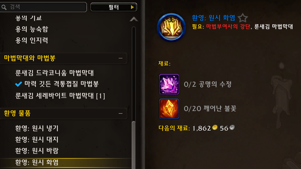 매시즌 모든전문기술 만숙찍는것은 그렇게 어려운편이 아니었는데 이번 용군단에 전문기술이 많이 디테일 해지면서 올리기 까다롭습니다.