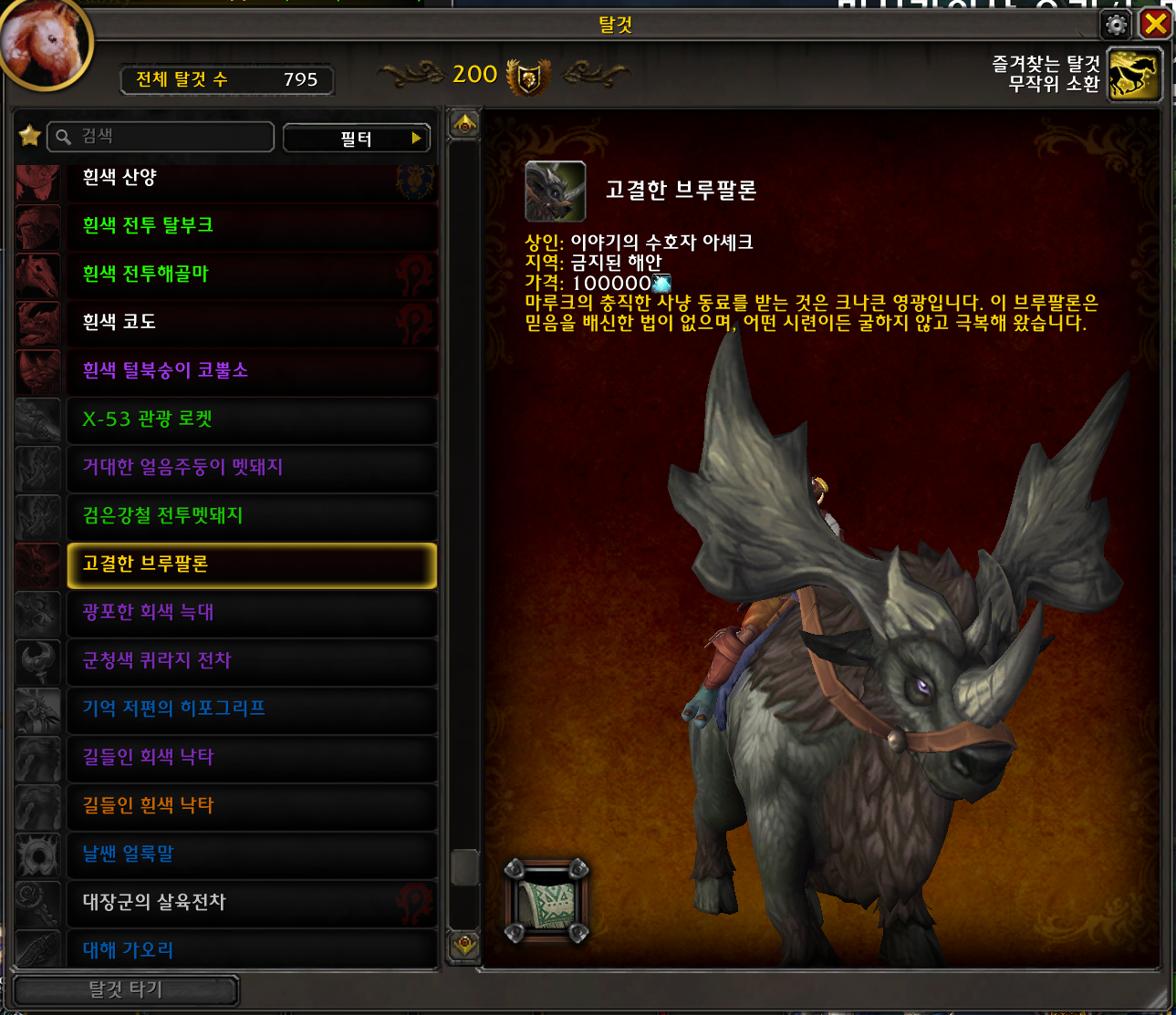 2023.04.04 고결한 브루팔론 획득 795번째 탈것