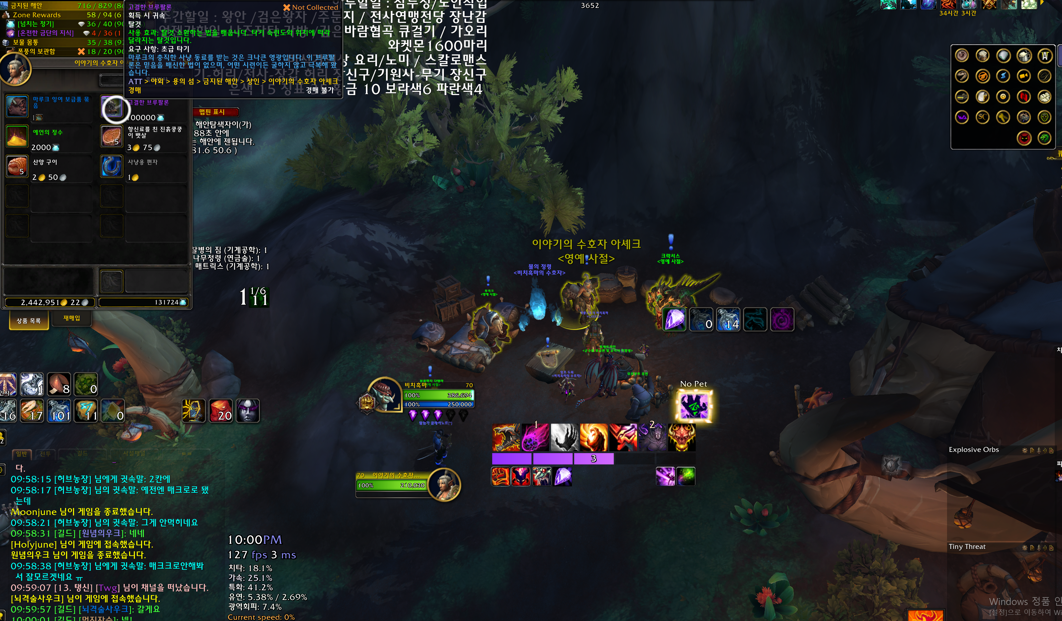 고결한 브루팔론은 용군단 탈것으로 금지된해안에서 넘치는정기 십만개로 구매하는 탈것입니다.