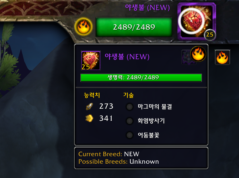 이런식으로 야생불이 등급이 떨어집니다. 보라색 에픽으로 변합니다.