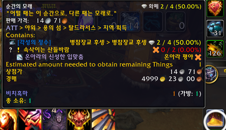 순간의 모래는 경매장에서 구매하거나 지저분한 시계나 영원의 모래를 잡고 득하시면 됩니다.