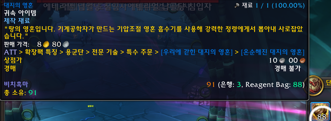 인벤토리에 대지의 영혼이 88개 있는거보니 89트걸렸네요 저는