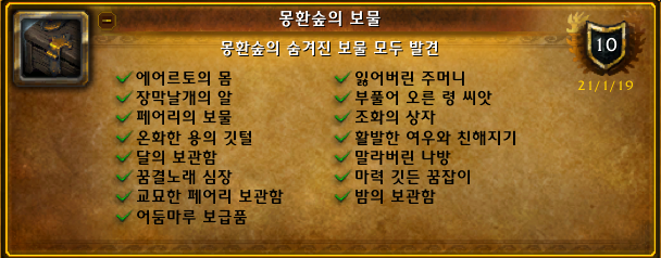 날렵이는 몽환숲의 보물 업적중에
