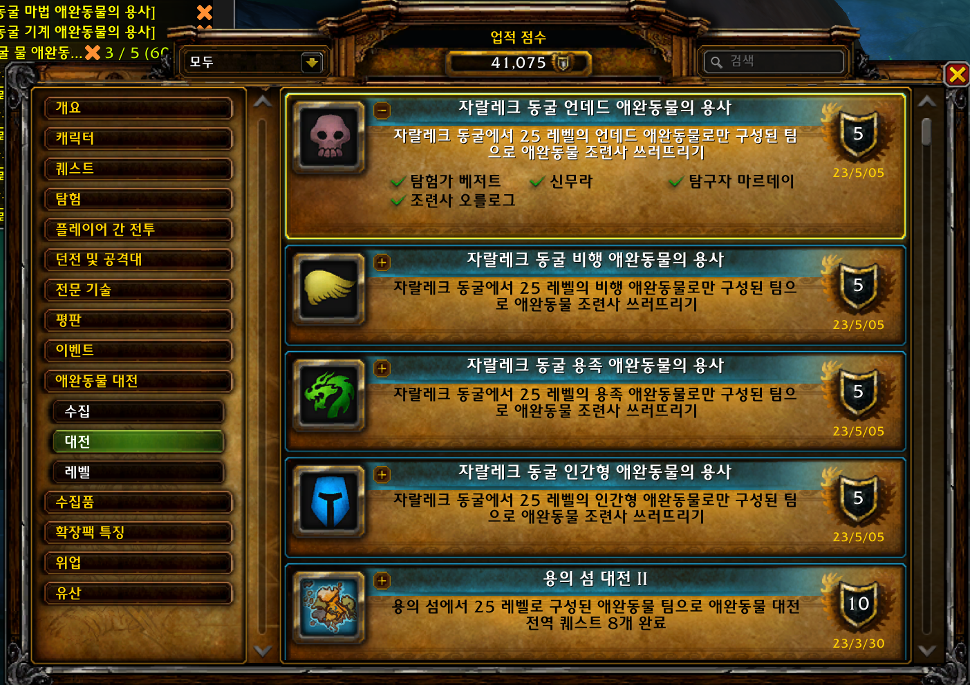 2023.05.05 자랄레크 동굴 언데드 애완동물의 용사 획득 5점짜리 41075점