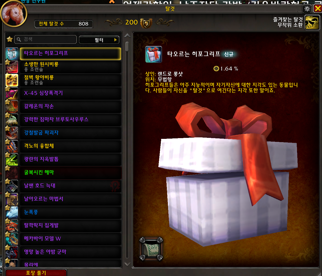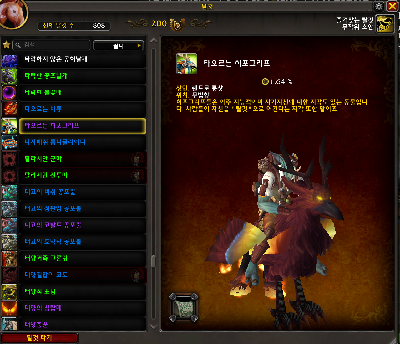 2023.05.11 타오르는 히포그리프 획득 808번째 탈것