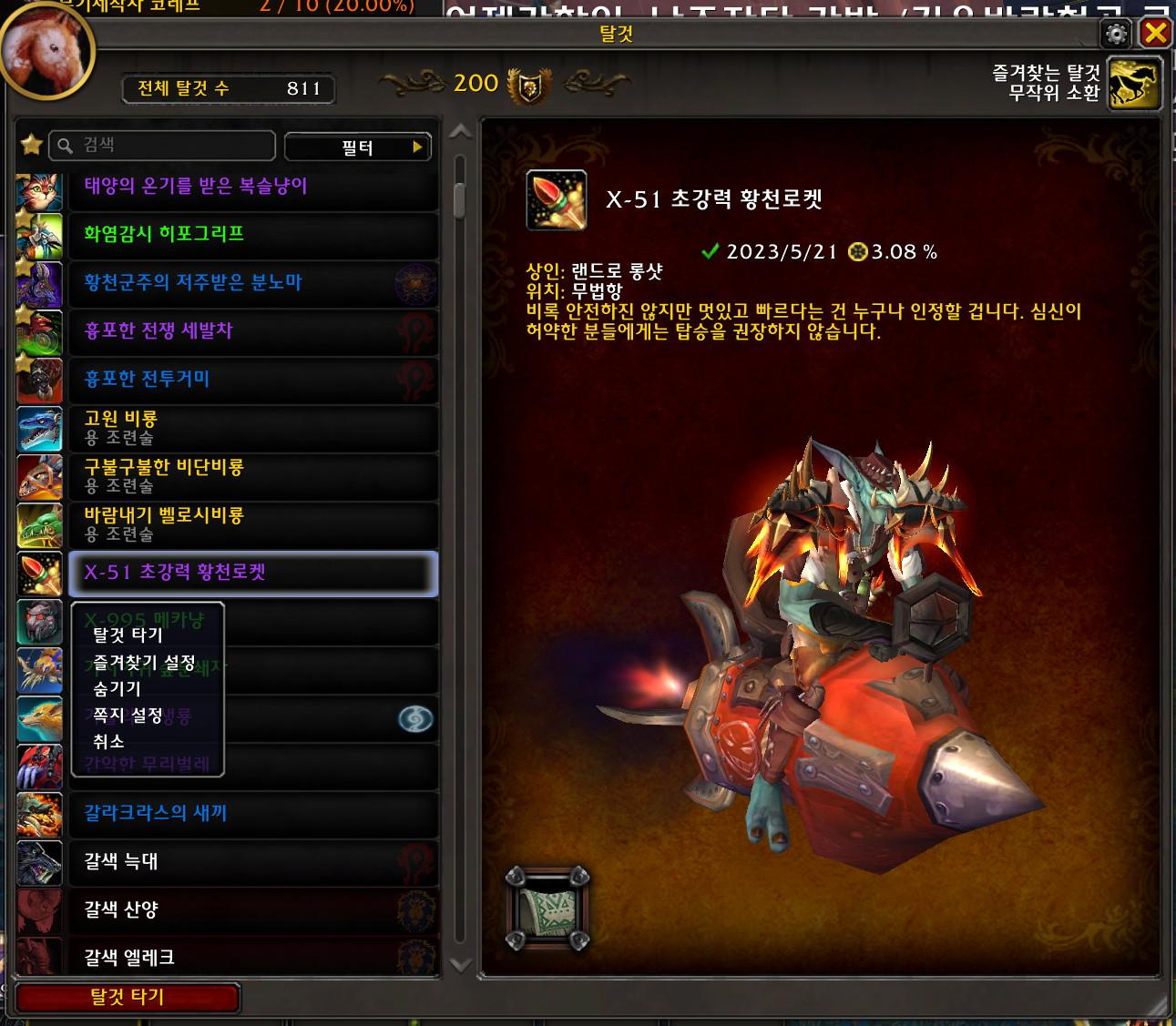 2023.05.21 X-51 초강력 황천로켓 획득 811번째 탈것