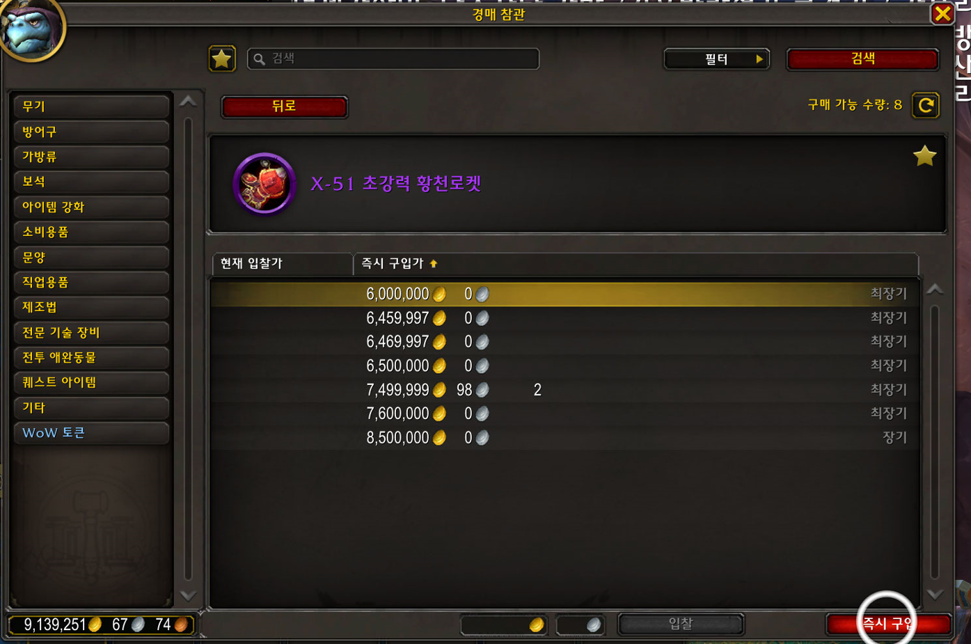 다른 플레이어가 암시장에 산걸 경매장에 올리면 그걸 구매하여야 합니다.