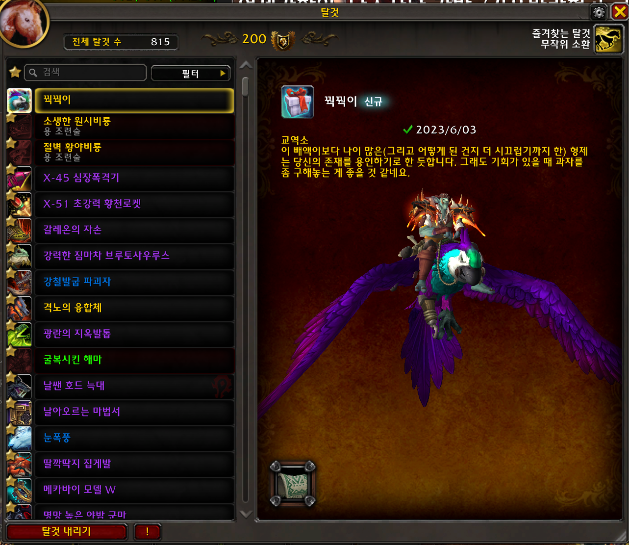 2023.06.03 꿕꿕이 획득 815번째 탈것