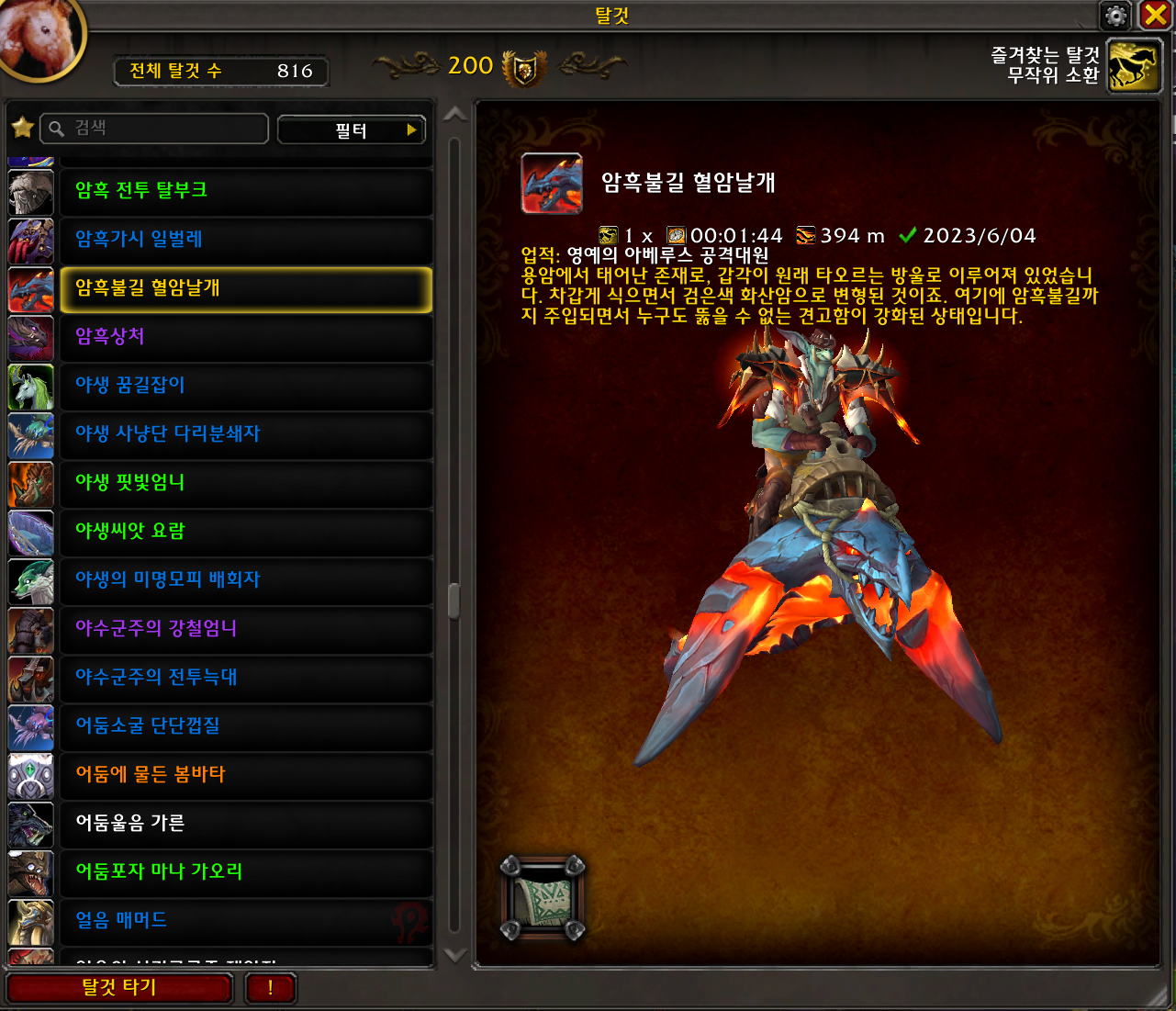 2023.06.04 암흑불길 혈암날개 획득 816번째 탈것