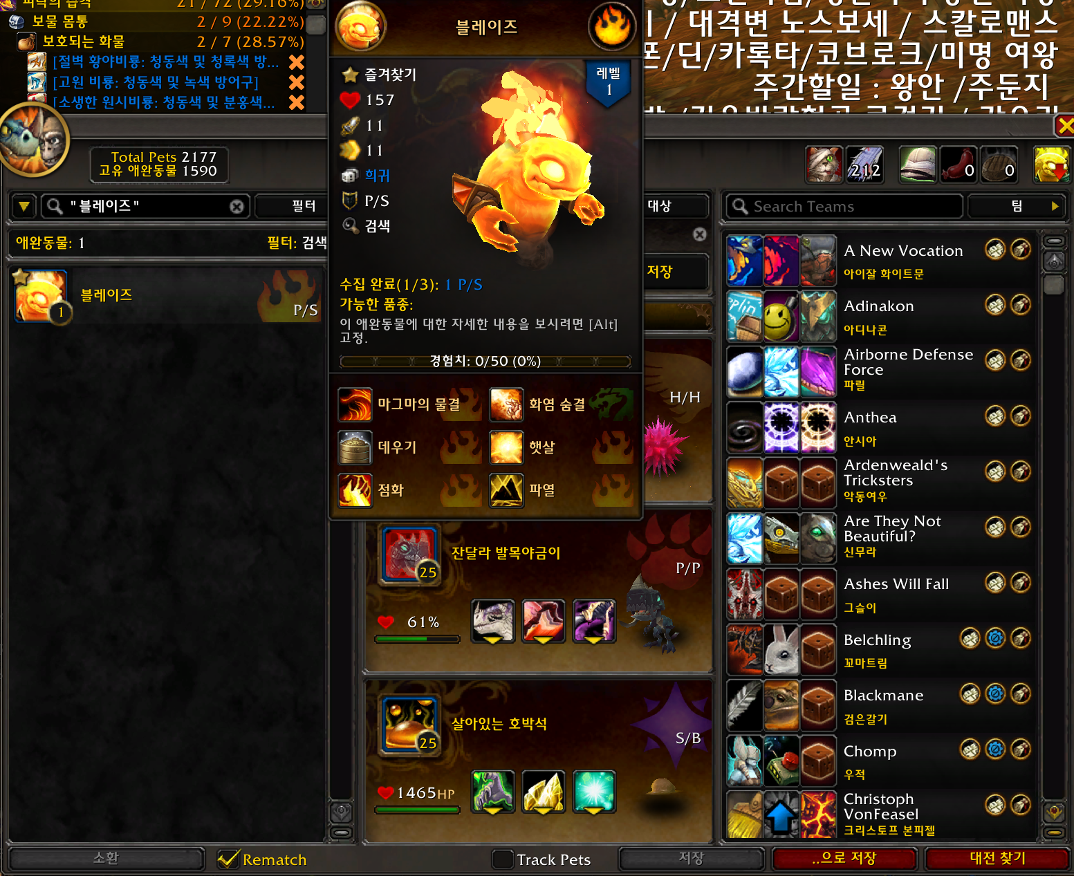 블레이즈 애완동물은 용군단 확장팩 애완동물로 앰브레와 얻는방법이 동일합니다.