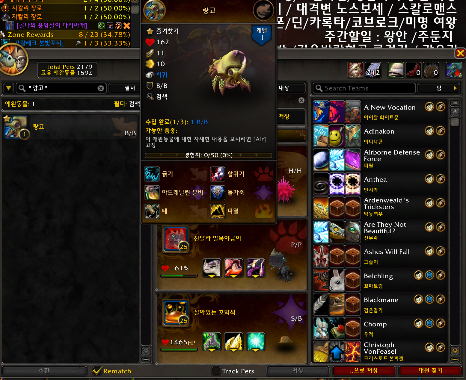 애완동물 랑고는 용군단 확장팩 애완동물로 로암 니펜 영예 15가 되면 구매가능한 애완동물입니다.