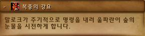 말로크는 울파란이 숲의 눈물을 사용하게 복종의 강요라는 스킬을 사용합니다.