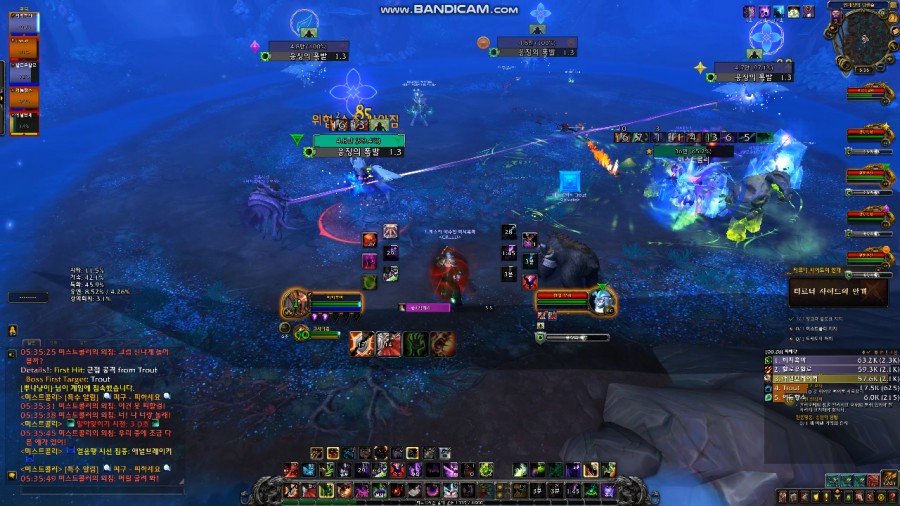 제가 마침 애벌레 시선고정 대상자가 되었고 탱쪽으로 이동하여 스턴걸고 다같이 잡는 모습입니다.