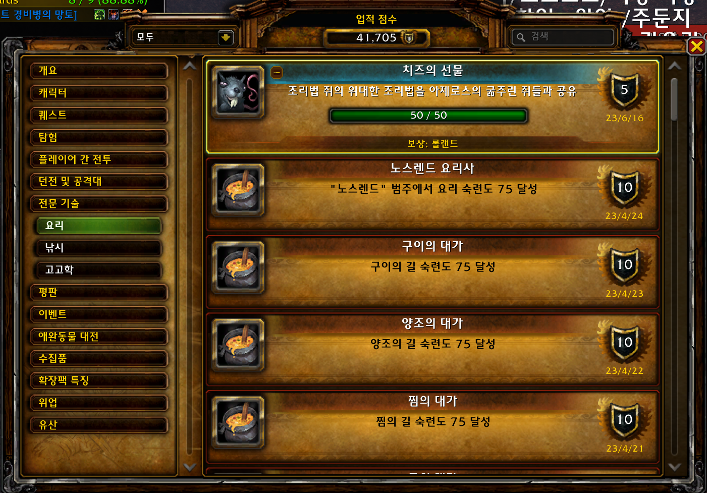 먼저 이업적을 하기 위해서는 용의 섬 요리 숙련도가 50이상이어야 합니다.