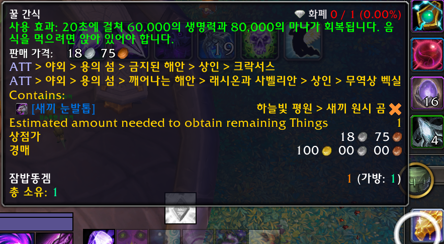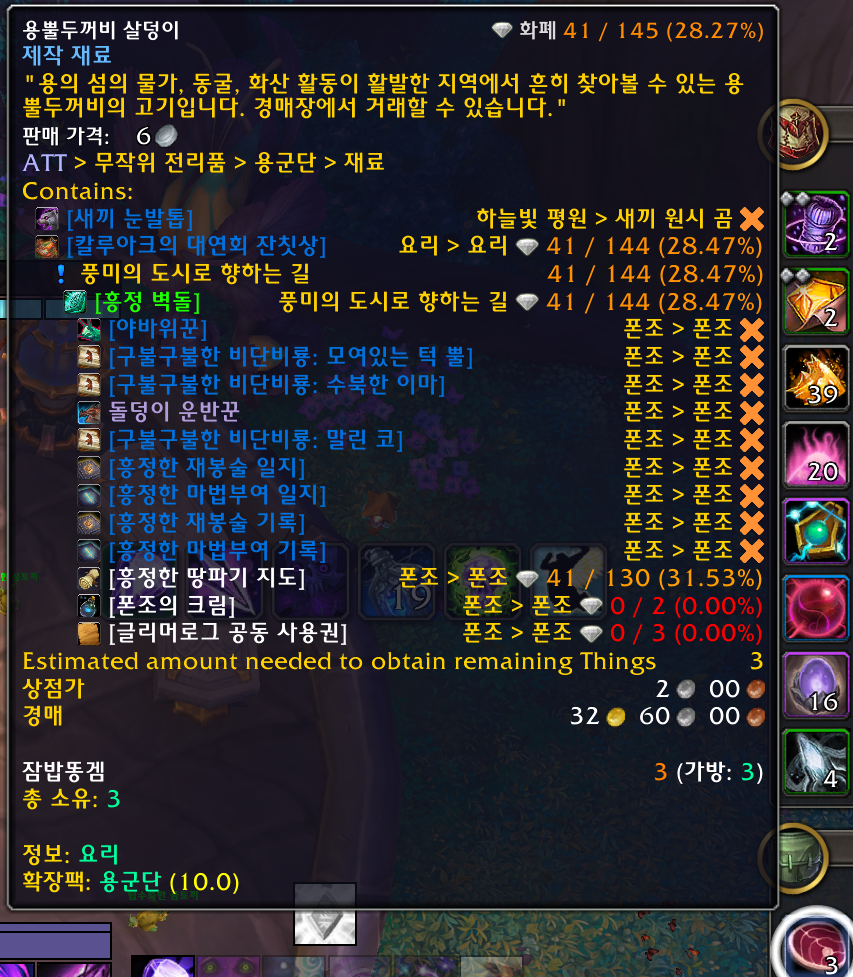 부캐로 먼저 용뿔두꺼비 살덩이 3개 / 꿀 간식 1개를 얻어둡니다.