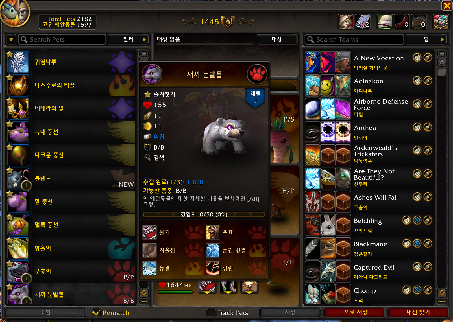 새끼 눈발톱 애완동물은 용군단 확장팩 애완동물로 특정조건이 필요합니다.