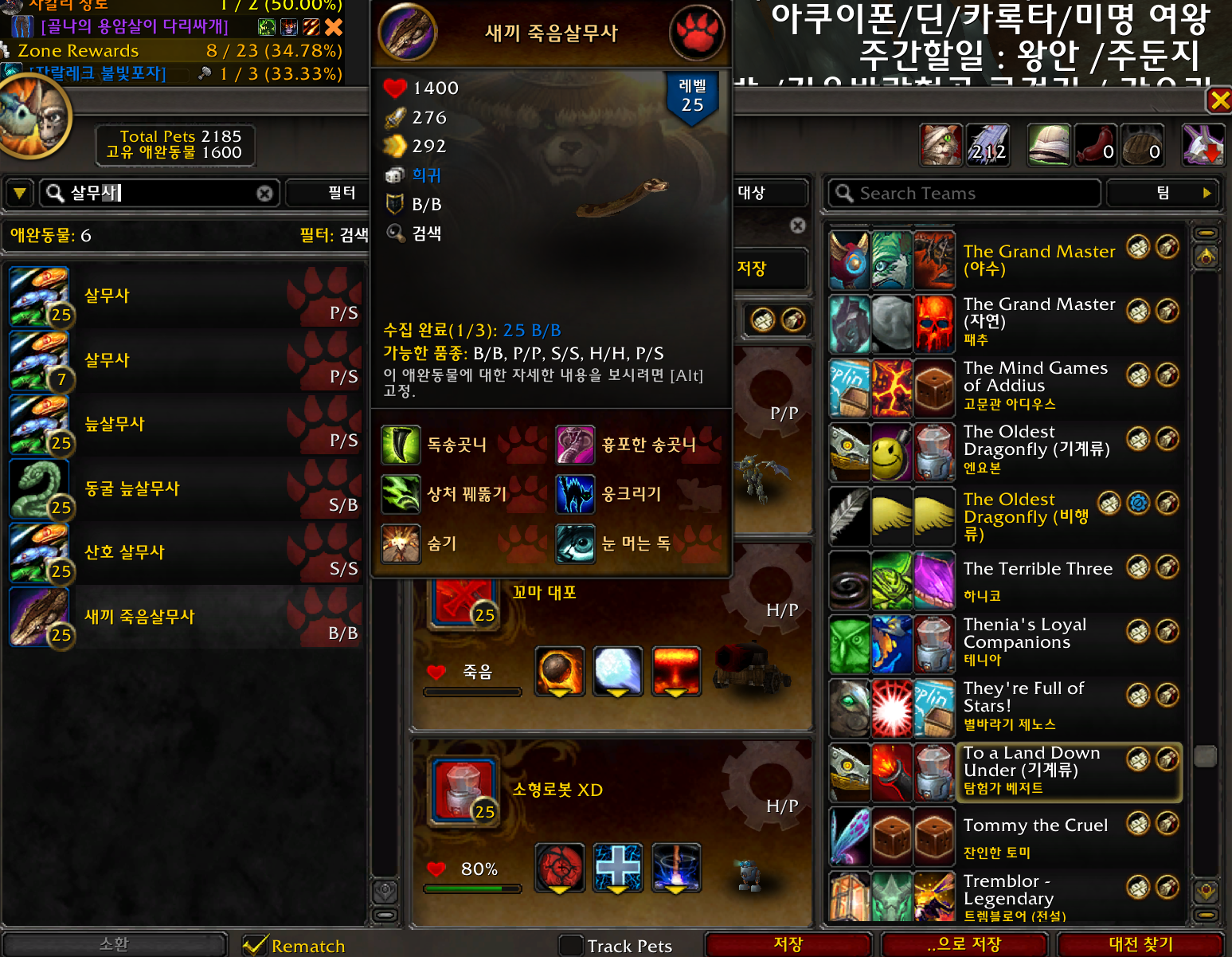 새끼 죽음살무사 애완동물은 판다리아 확장팩 애완동물로 황실 비단뱀을 잡으면 획득가능합니다.