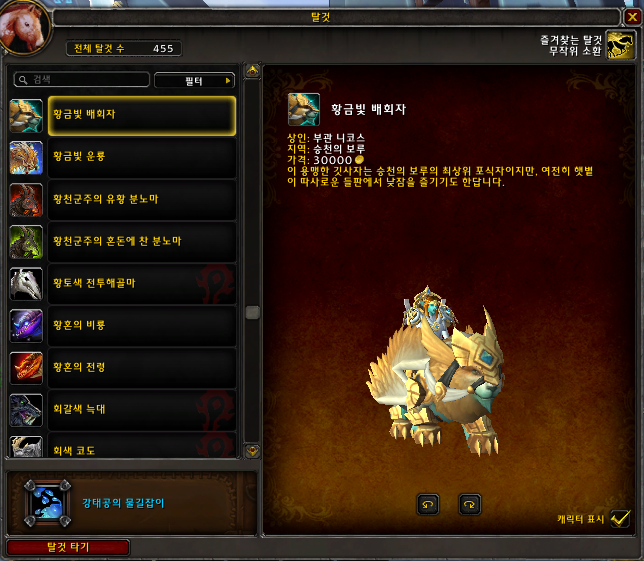 2021.01.21 황금빛 배회자 획득 455번째 탈것