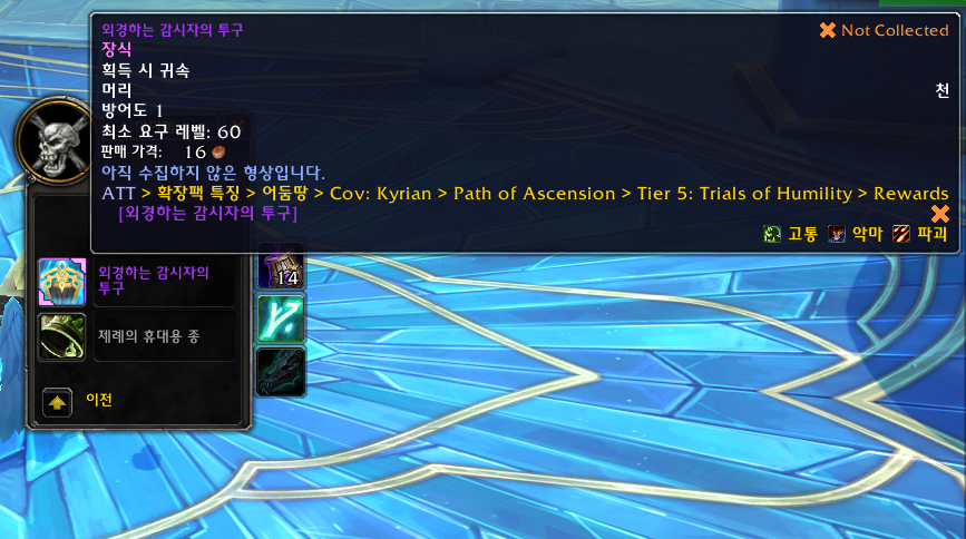 칼리스테네를 겸손난이도로 클리어하면 외경하는 감시자의 투구 형변템을 획득합니다.