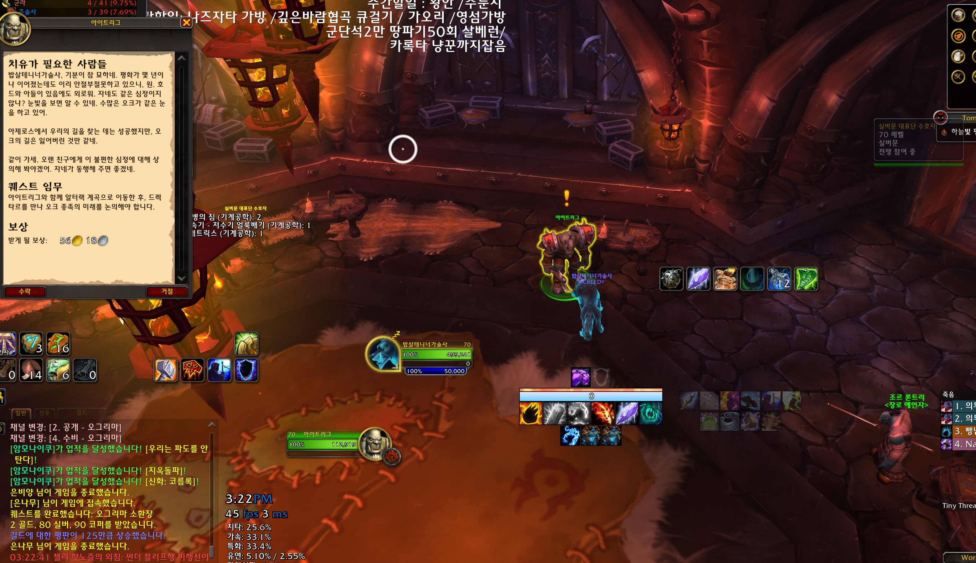 그런데 버그가 있는건지 계정공유인건지 저는 오크캐릭이 오그리마 평판이 우호적인데 해당캐릭으로 아이트리그에게 가니까 퀘스트를 주었습니다. 아마도 본캐로 오그리마 확고이면 되는것 같습니다.