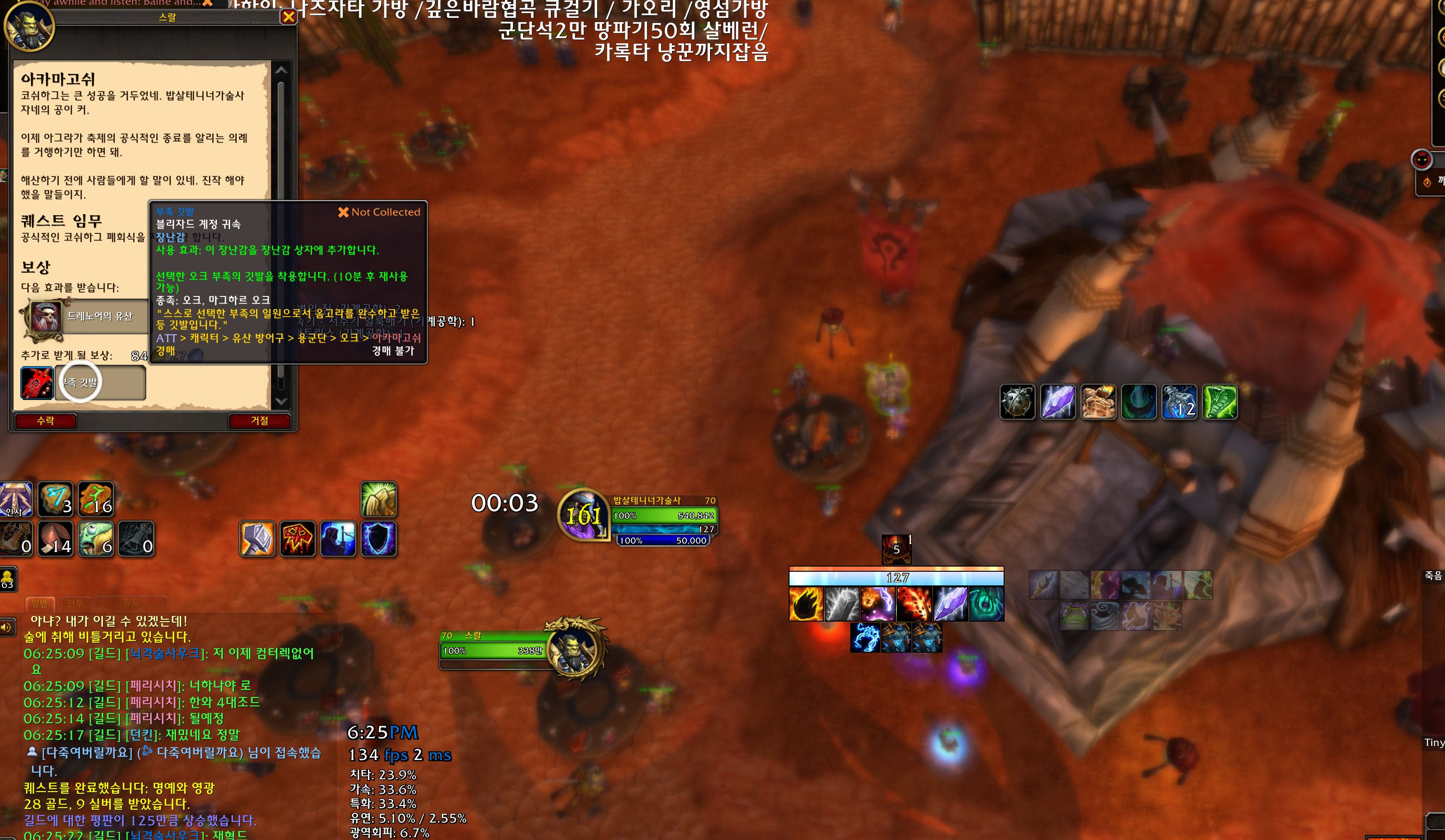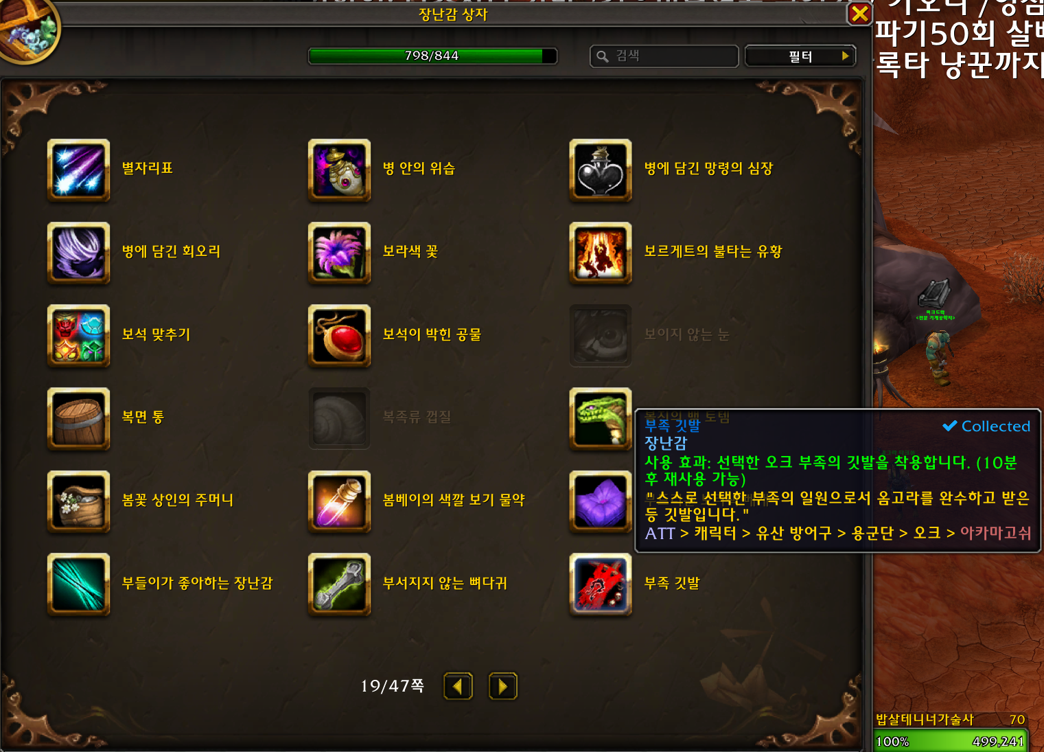 마지막에 부족 깃발 장난감과 오크 유산룩을 줍니다.