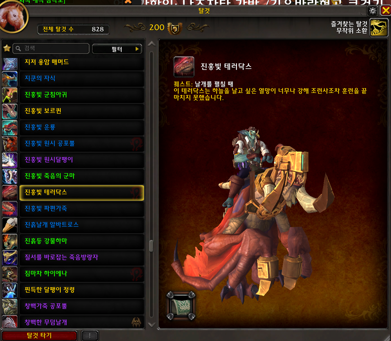 2023.07.13 진홍빛 테러닥스 획득 828번째 탈것