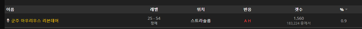 드랍률은 wowhaed 기준 0.9%정도 입니다.