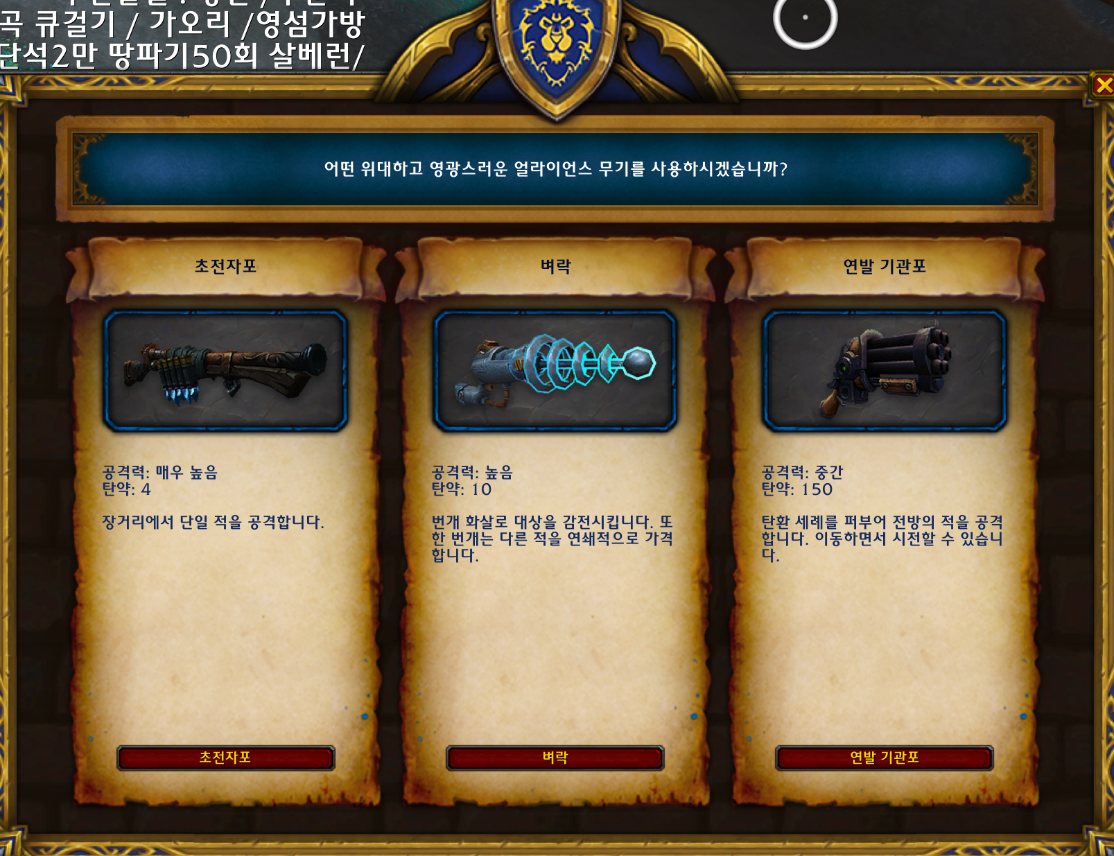 무기선반을 클릭하면 무기를 선택해서 사용도 가능합니다.