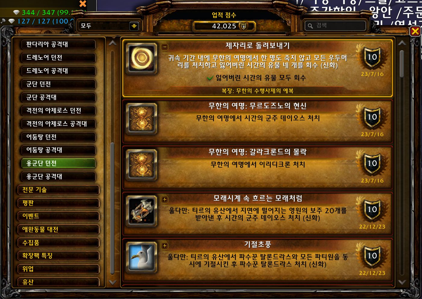 제자리로 돌려보내기 업적은 용군단 확장팩 업적으로 무한의 여명을 5명전원 노다이로 클리어하면 됩니다.