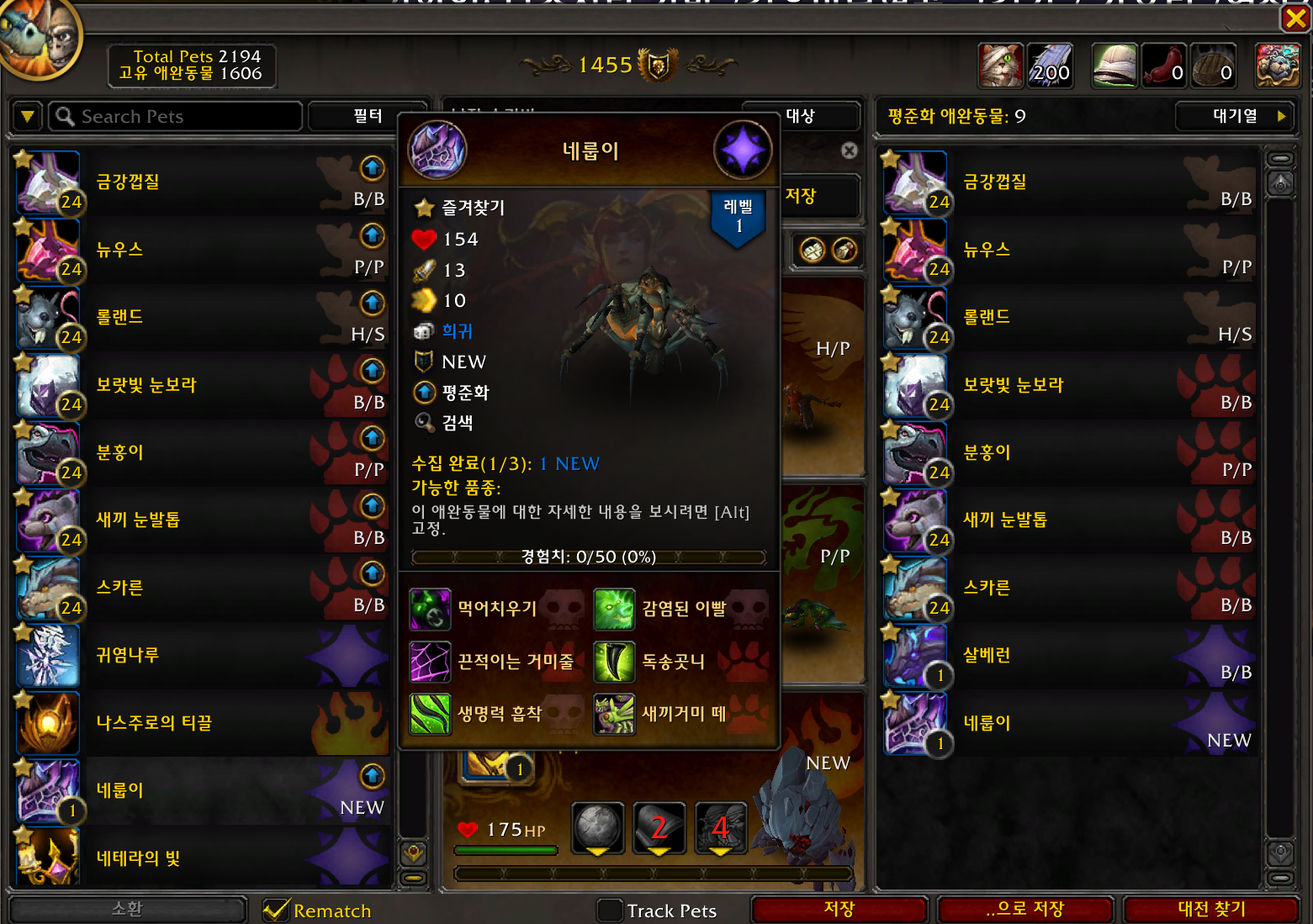 네룹이 애완동물은 용군단 확장팩 애완동물로 시간의 균열 이벤트에 참여해서 얻는 화폐인