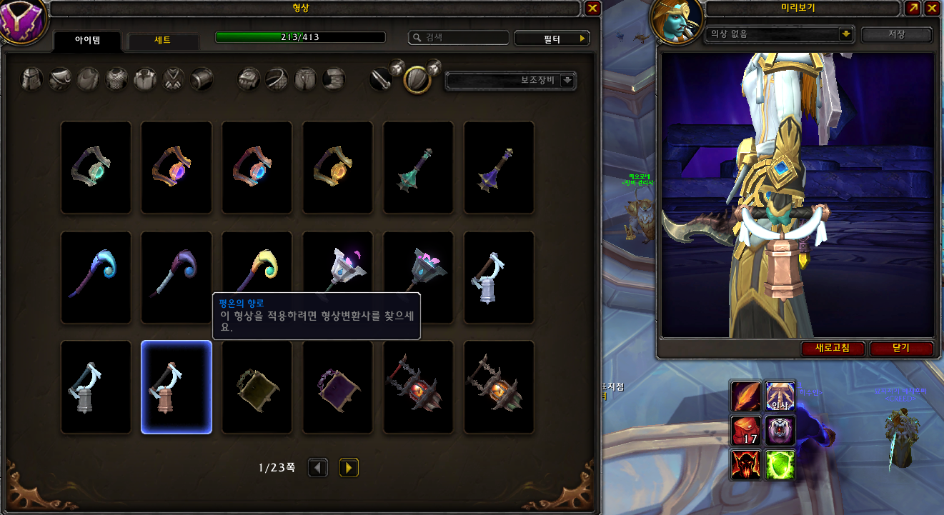 평온의 향로와 넓적날 절단기 형상을 수집합니다.