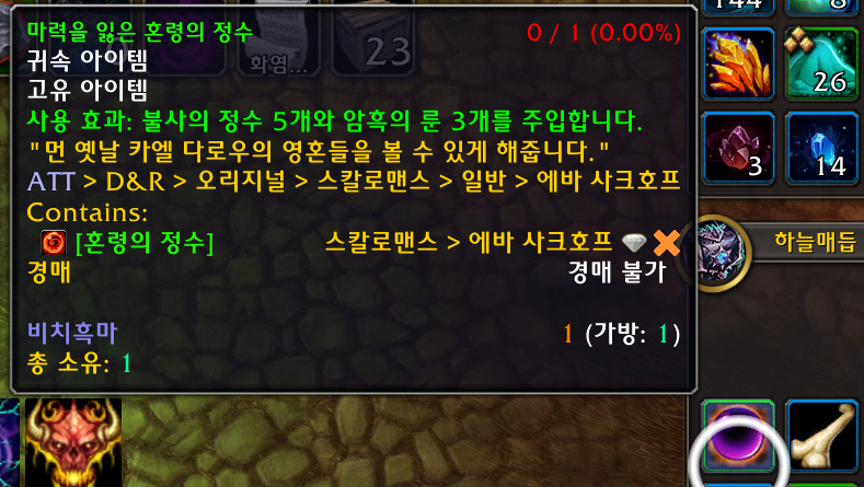 혼령의 정수를 장착하고 던전밖에