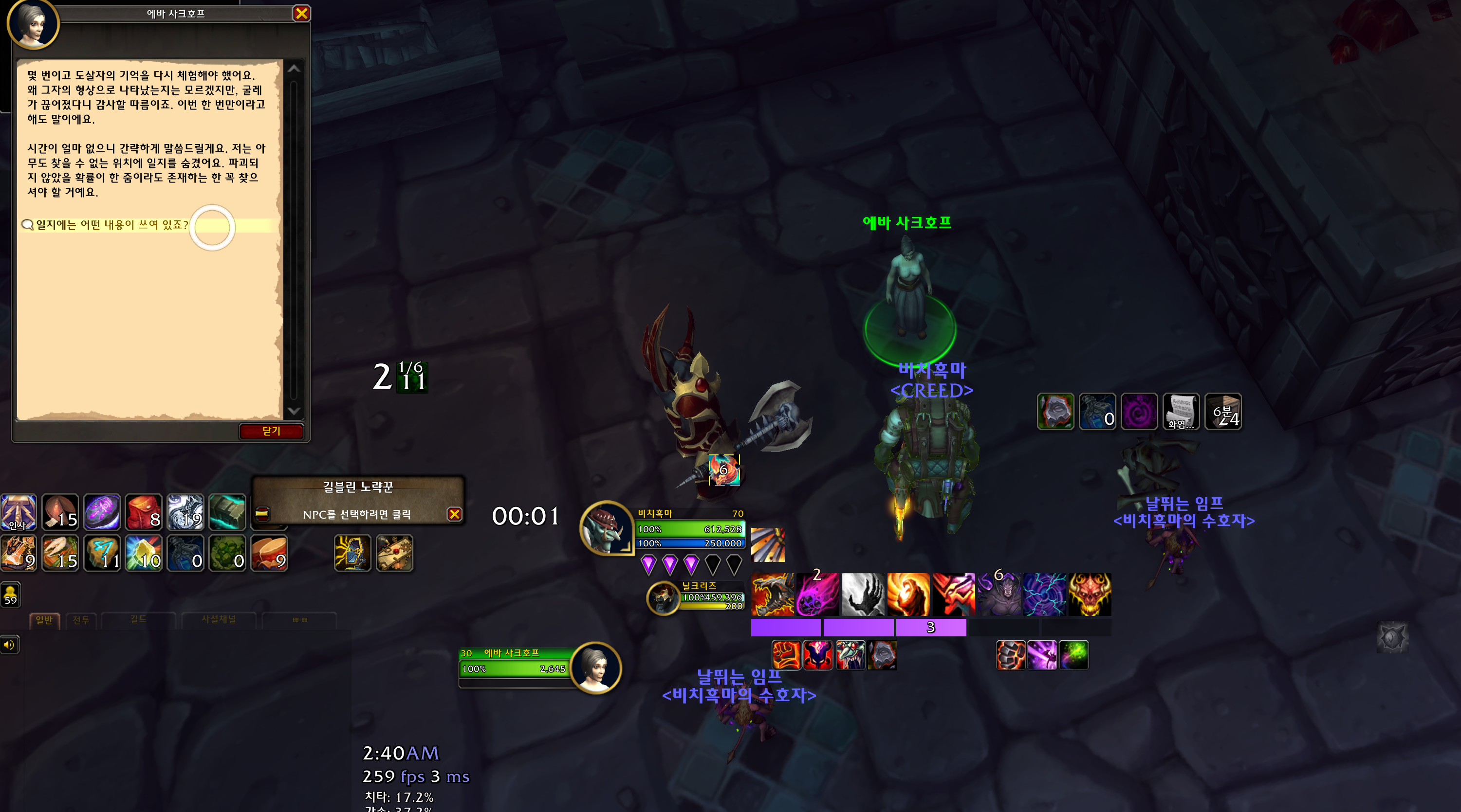 이제 버프창에서 장난감버프를 지우면 에바 사크호프가 대화가 가능해집니다.