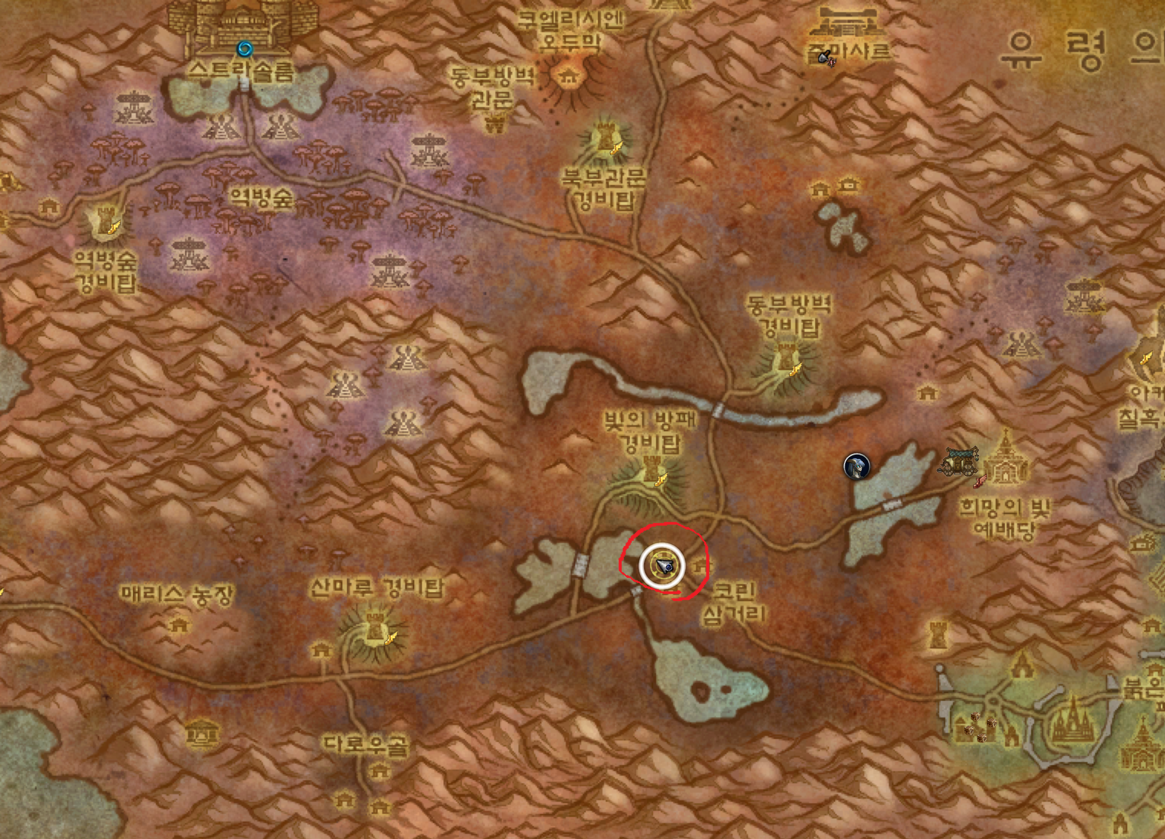 오리지날 스트라솔룸 정문으로 들어가서 해당위치에 있습니다. (리븐데어 군마먹는 후문 아닙니다)