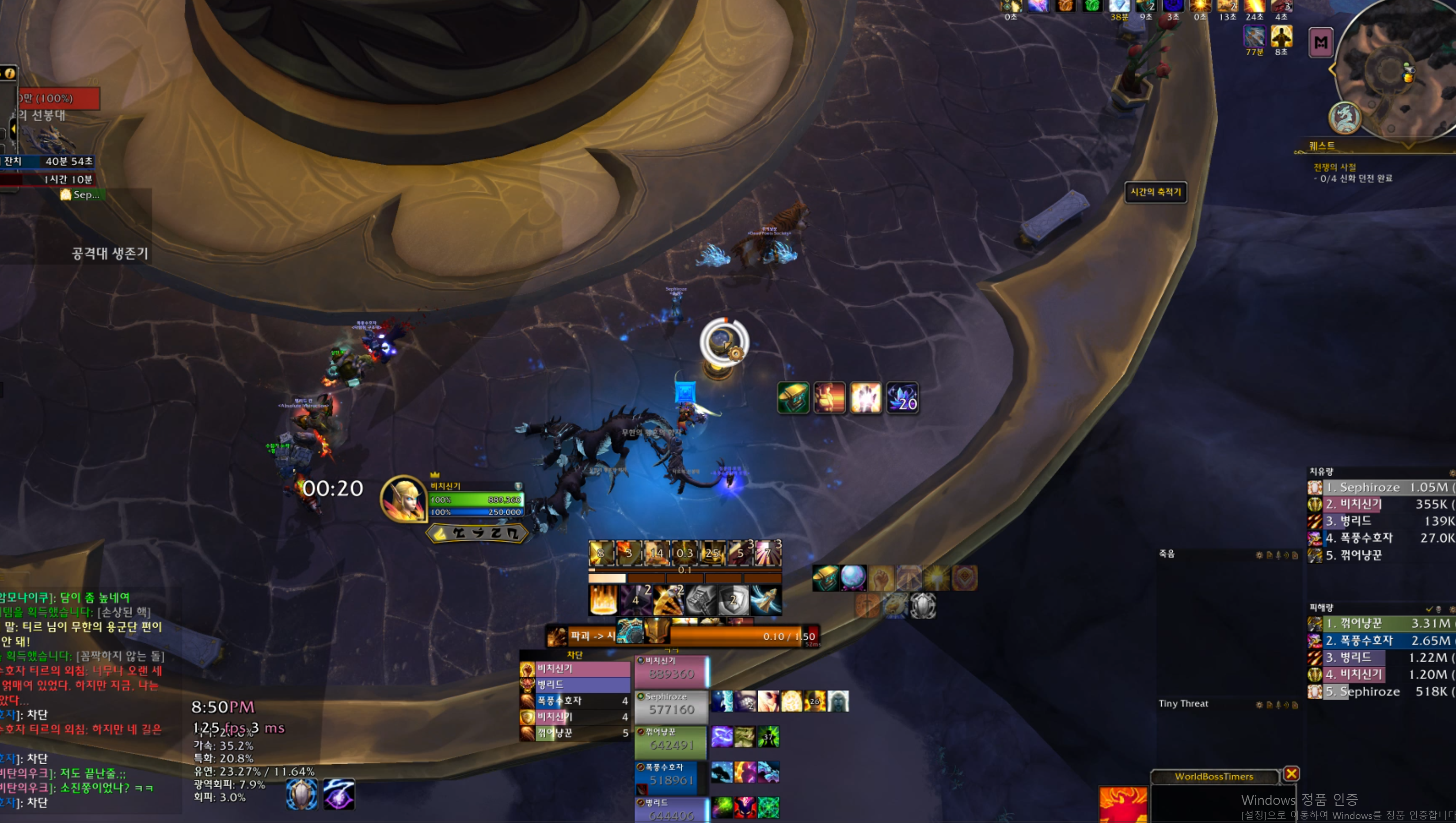 응축된 시간만 남겨놓고 응축된 시간이 사용하는 흰원 스킬로 간격이라고 비활성화되어있는 쫄을 맞춥니다.