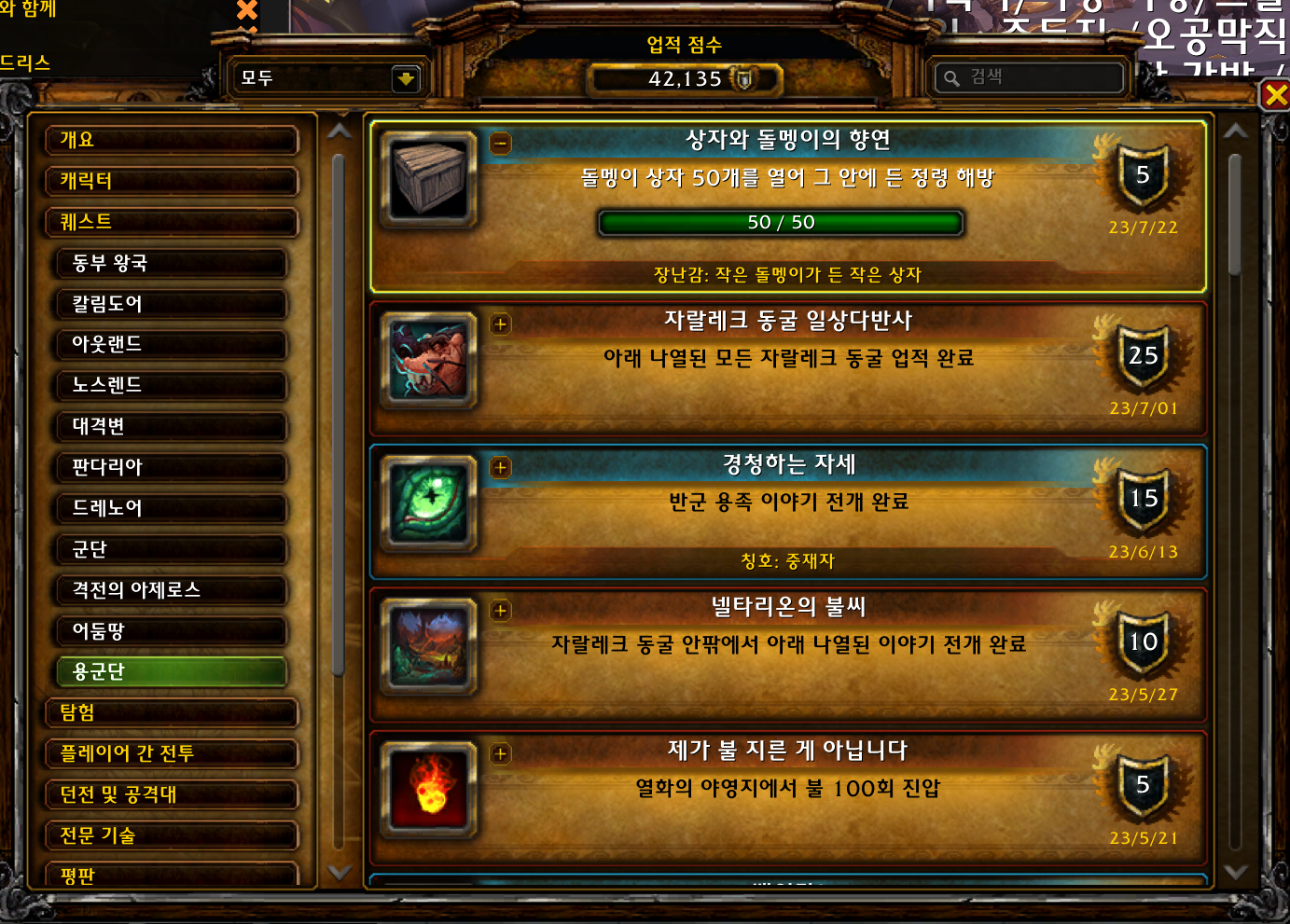 | [와우업적]넬타리온의 불씨 (1) | 2023.05.27 |