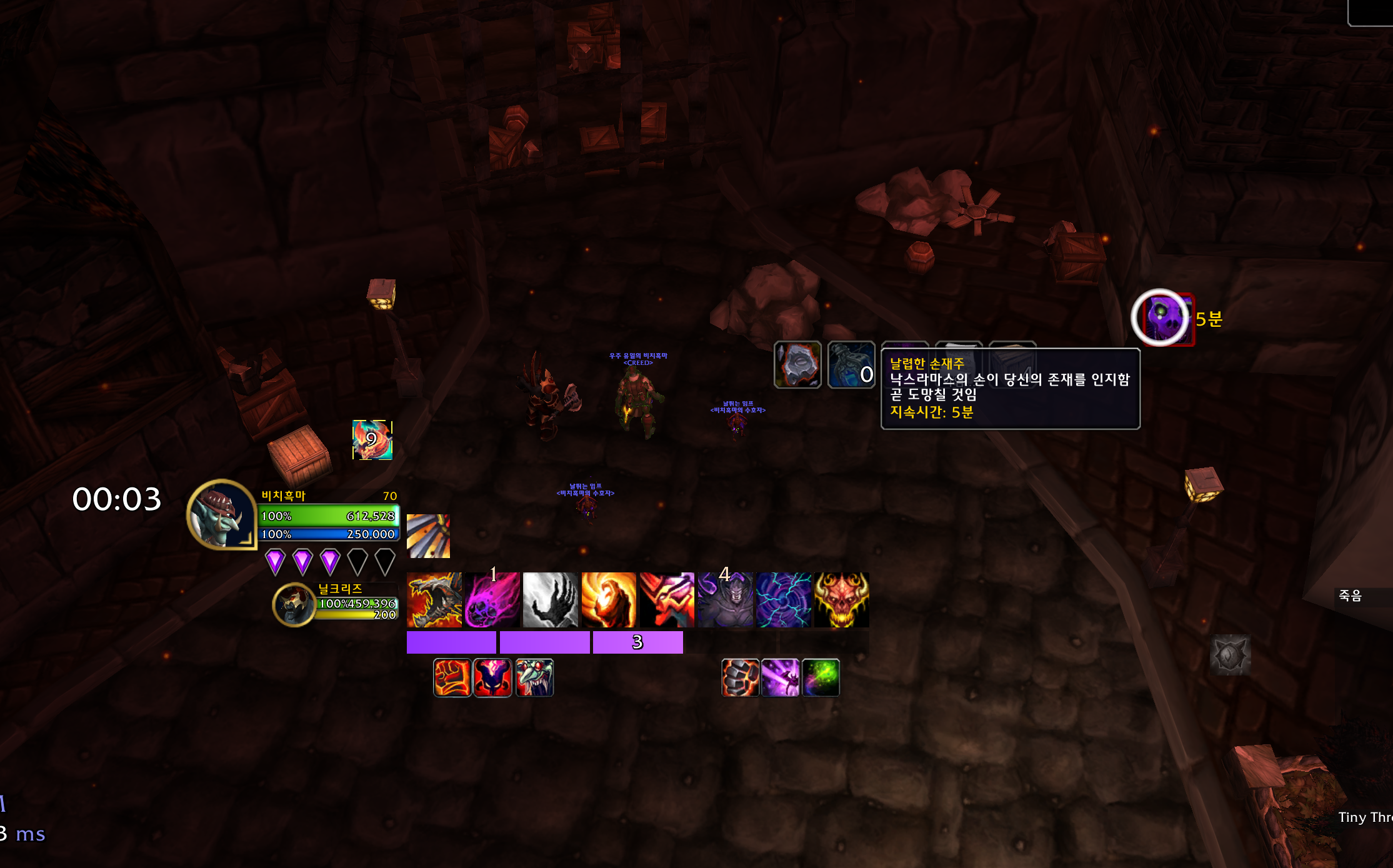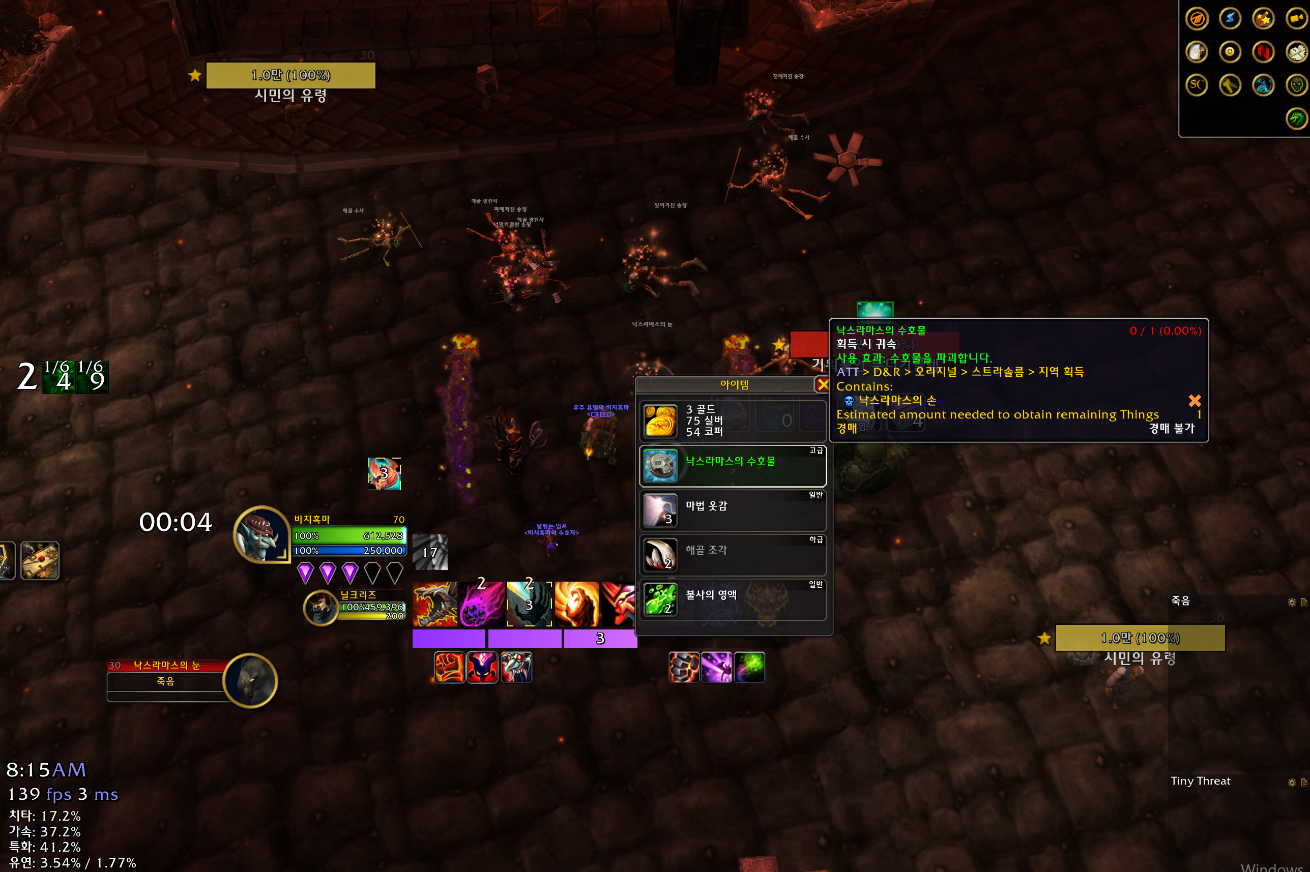 리븐데어까지 잡고 낙스라마스의 손에게 엑스트라버튼을 사용하면 됩니다.