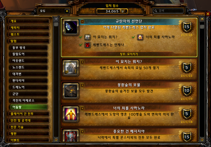 2021.01.22 이 묘지는 뭐지? 획득 5점짜리 34040점 이묘지는 뭐지? 업적은 규탄자의 선언던 하위업적입니다. 하는방법은 아래와 같습니다. 해당지역이 레벤드레스 선언단 평판 지역인데 해당지역에