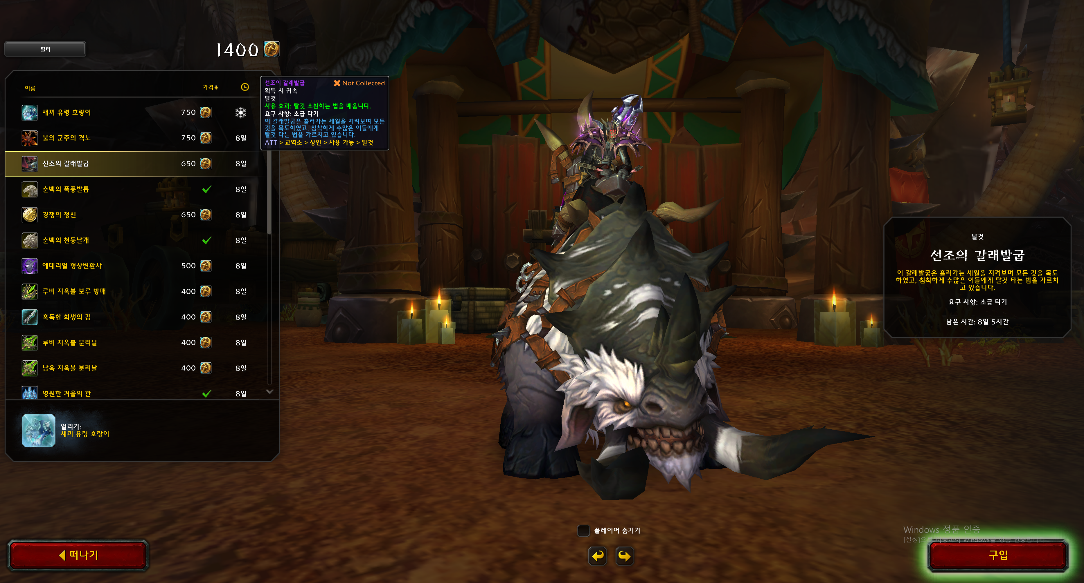 선조의 갈래발굽 탈것은 8월 교역소 탈것입니다.