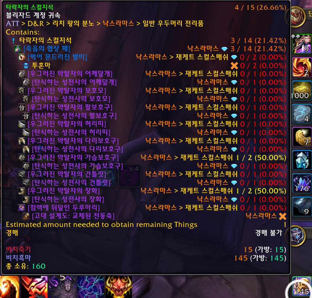 낙스라마스 보스1마리를 잡을때마다 타락자의 스컬지석 1개를 획득할수있고