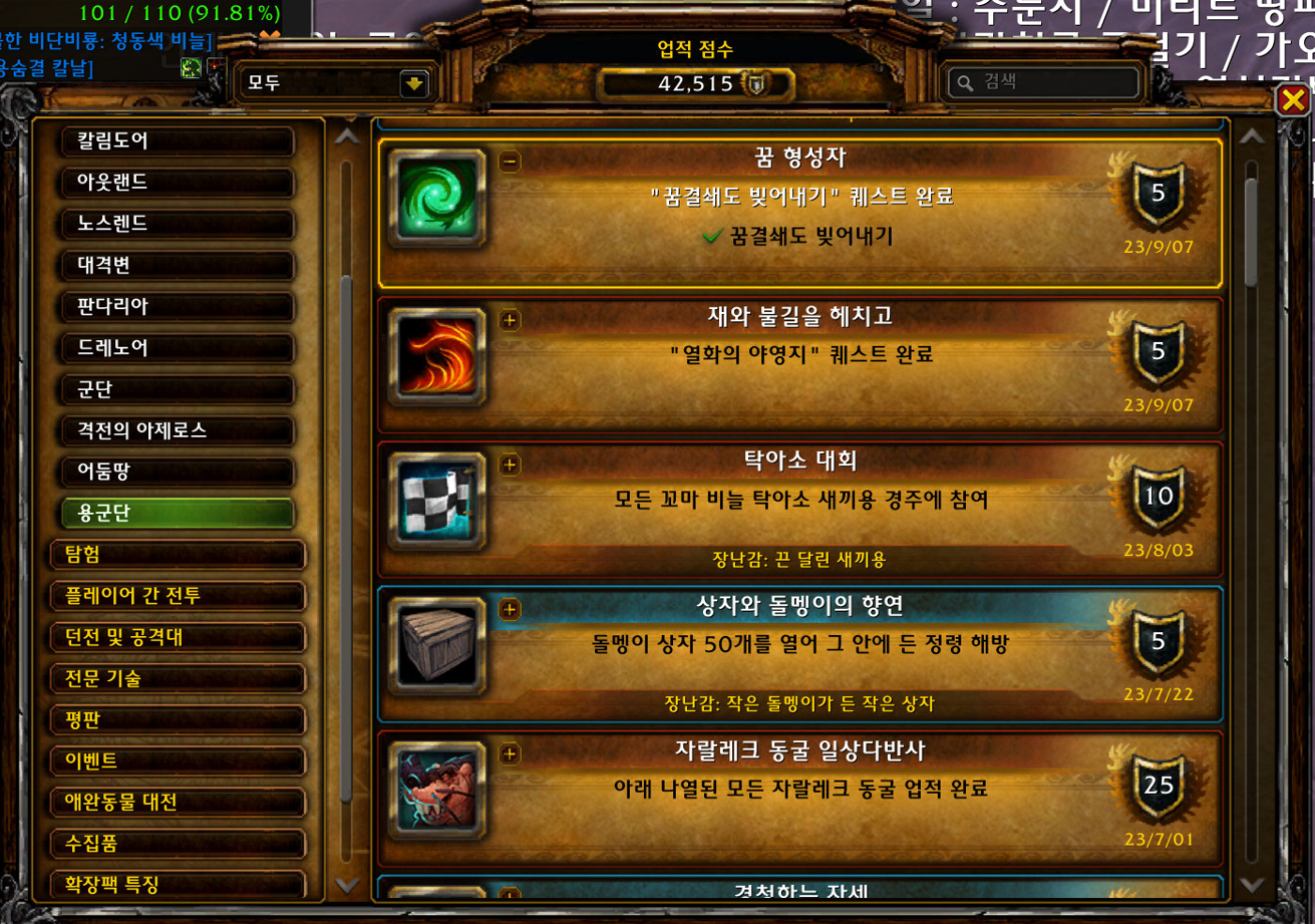 꿈 형성자 업적은 용군단 확장팩 업적으로 10.1.7에 추가된 꿈결쇄도 이벤트때 하는 업적입니다.