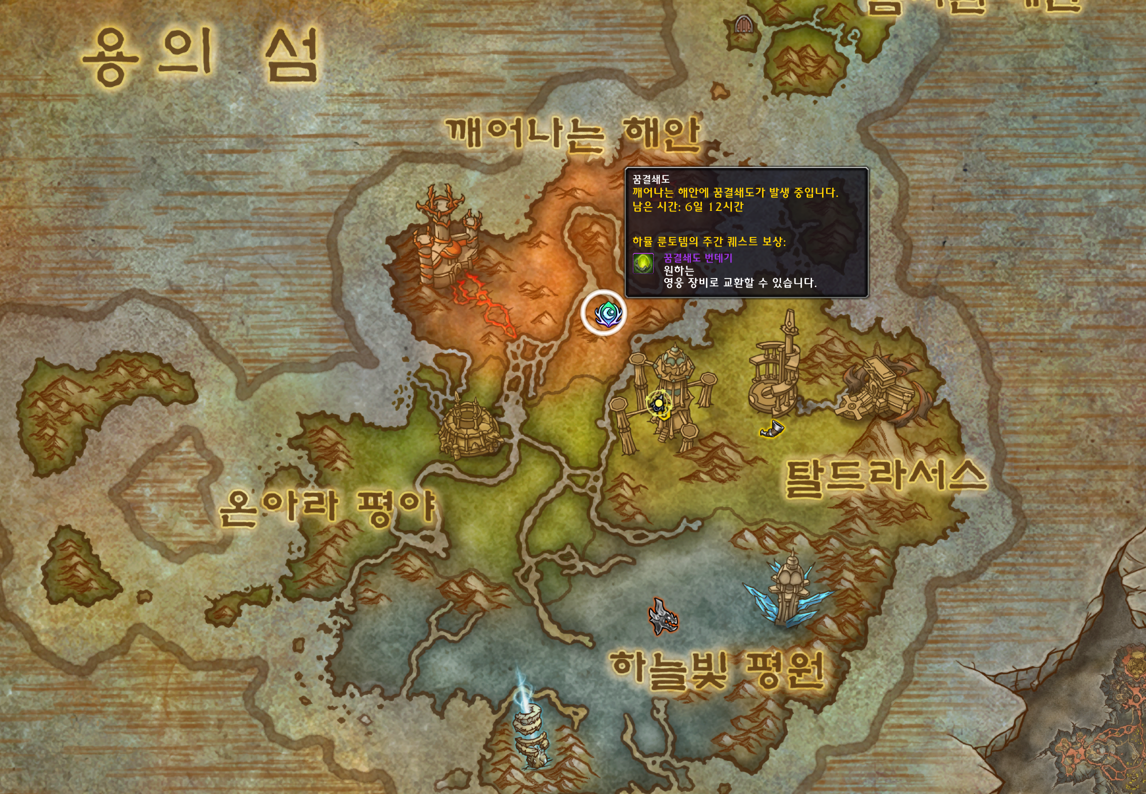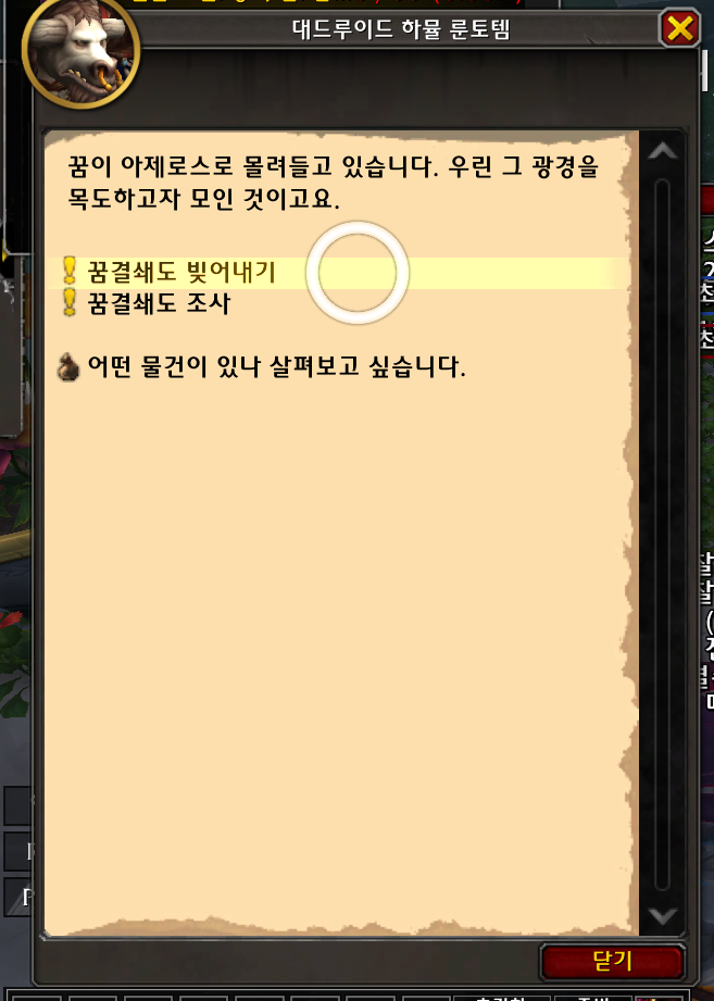 꿈결쇄도 이벤트 지역에 가면 대드루이드 하뮬 룬토템이 꿈결쇄도 빚어내기 라는 퀘스트를 주고 퀘스트를 완료만 하면 업적이 획득됩니다.