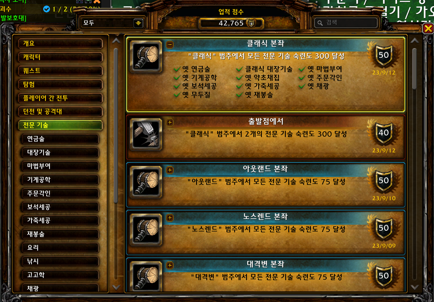 10가지 전문기술을 전부 리분 만숙찍는업적입니다.